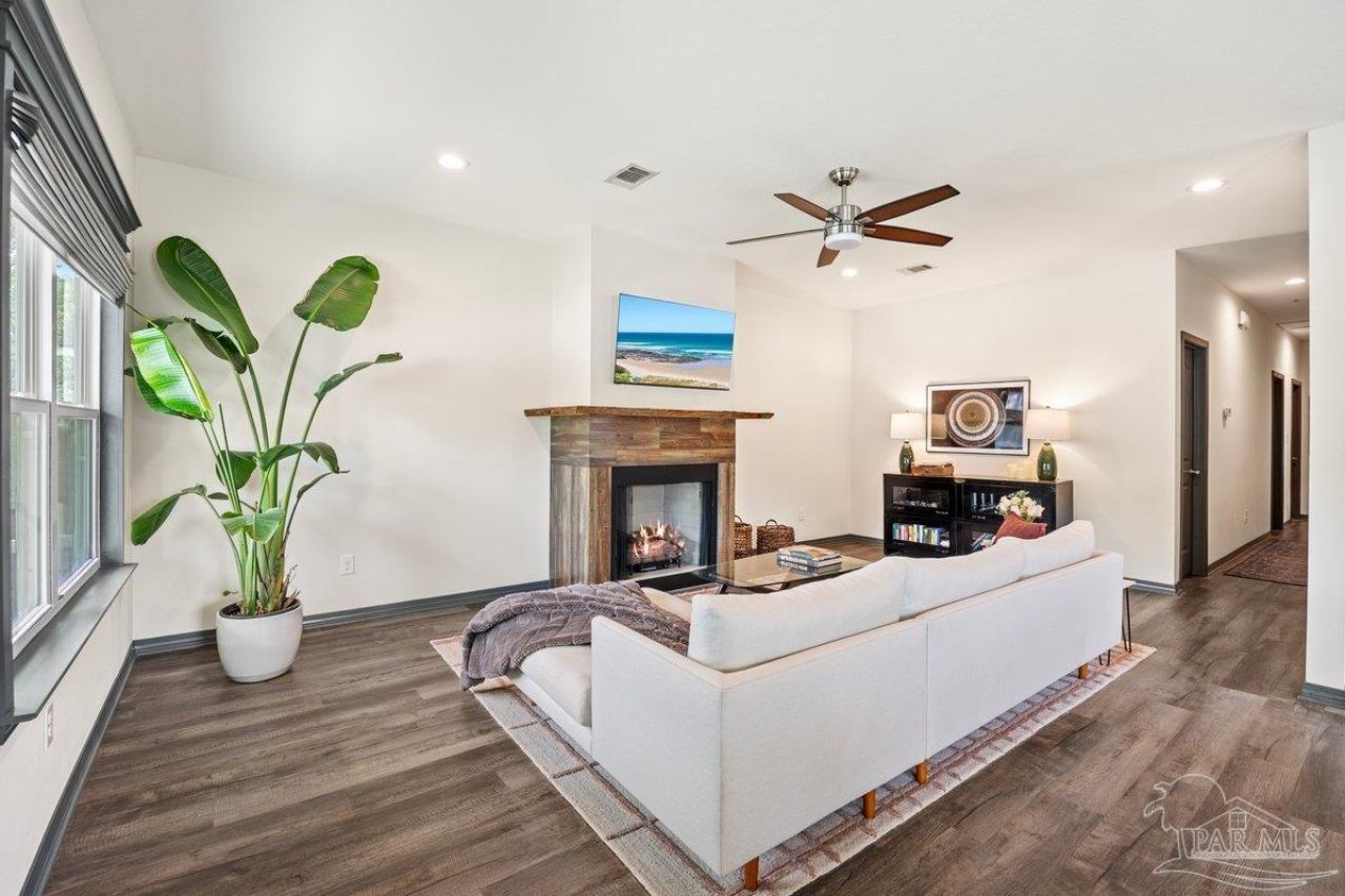 Adorable 2BR/2BA cottage-style home built in 2017 with approx. 1,300 SF and no HOA. This one-story home offers a functional open floor plan with 9' ceilings, abundant natural light, fireplace, and luxury vinyl flooring throughout. Conveniently located just minutes from Naval Air Station Pensacola. The kitchen features white shaker cabinets, granite countertops, peninsula with bar seating, custom tile backsplash, large walk-in pantry, and black stainless steel appliances. Guest bedroom has convenient access to hall bath with granite vanity, jetted soaking tub, efficiency toilet, and tile surround. Primary suite includes walk-in closet and en-suite bath with granite vanity, efficiency toilet, and tiled shower with frameless glass enclosure. Spacious laundry/mud room provides additional storage. Situated on a corner lot with low-maintenance vinyl fencing, outdoor storage building with electricity, and owned solar panels (no balance). The average electric bill per month is only $35. Ideal for primary residence, second home, or short-/long-term rental investment. Schedule your showing today.